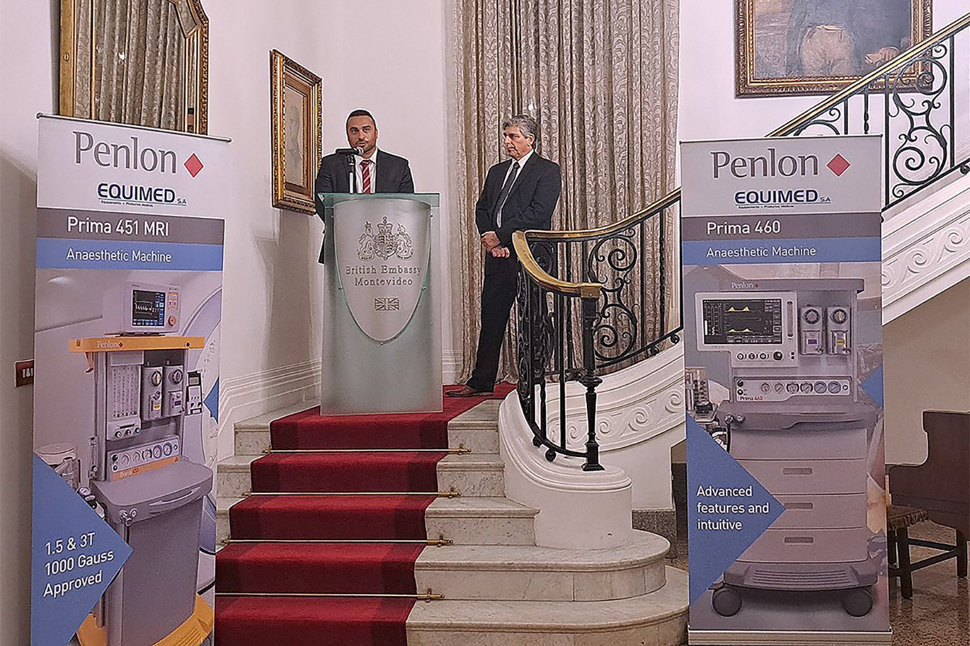 Tuvimos el placer de realizar la presentación de Penlon, empresa británica líder en el mercado de Anestesia, en la Embajada Británica en Montevideo. El evento, auspiciado por la Embajadora Faye O'Connor, contó con la presencia de importantes instituciones médicas y anestesistas de todo el país. En él, marcamos el renovado compromiso de EQUIMED S.A. y de Penlon con el mercado uruguayo.