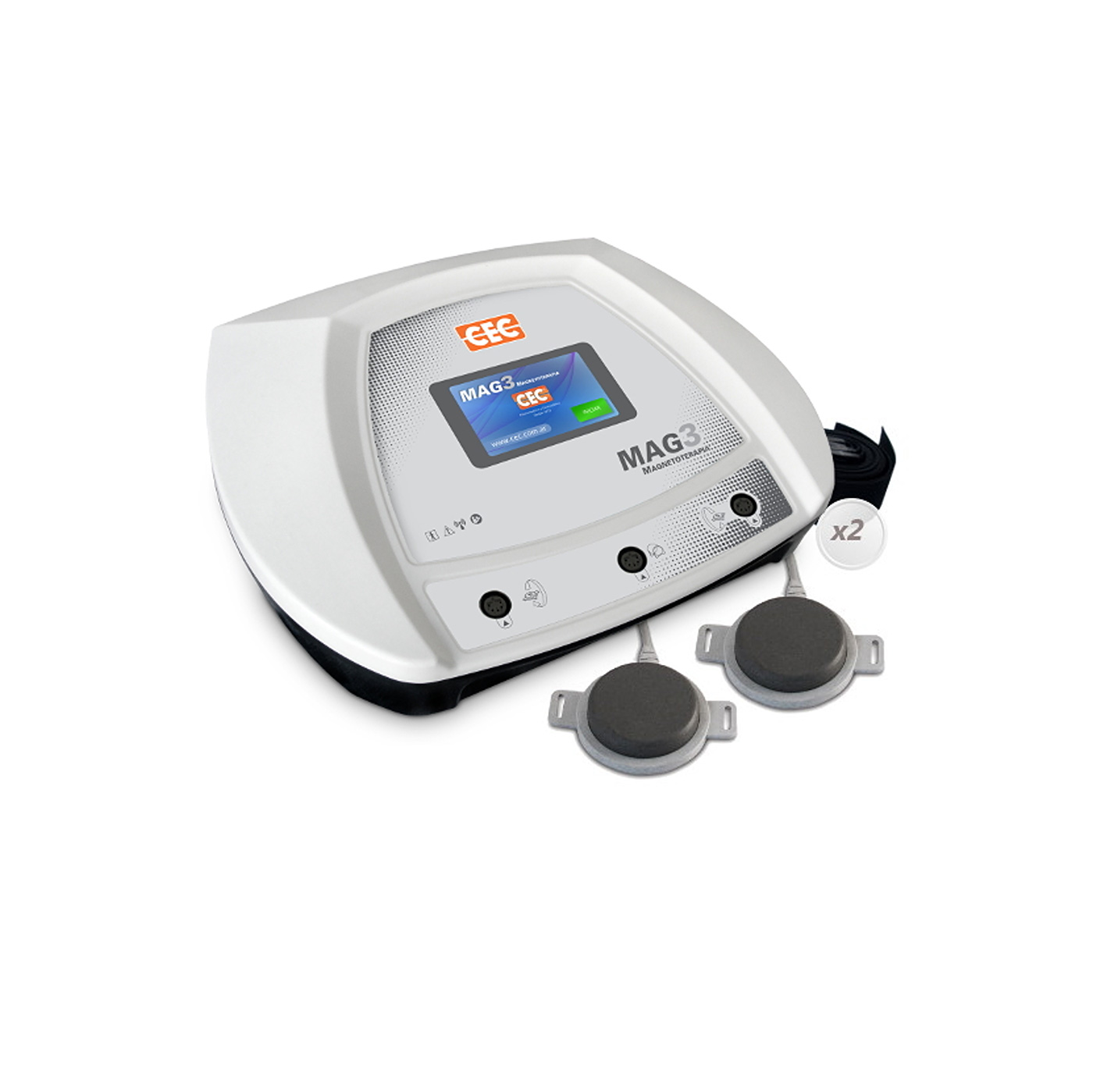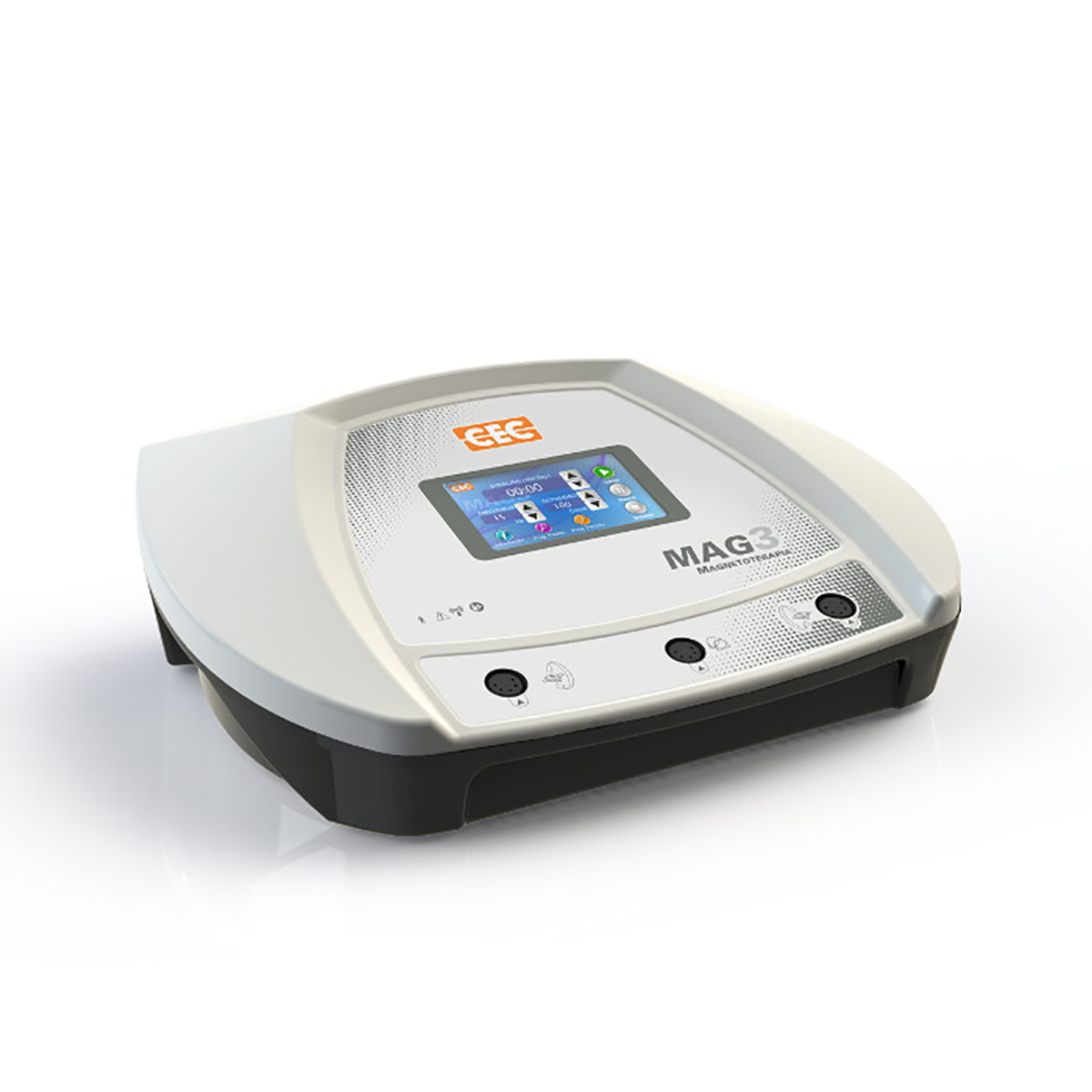 200 Gauss de potencia por canal independiente: 3 canales, 2 solenoides planos, 1 túnel (opcional). Generador de campo magnético de alta intensidad y baja frecuencia, para fisioterapia, deporte, reumatología y neurología, entre otras aplicaciones. Trabaja en modo continuo y pulsátil. MAG 3 Asegura al profesional máximas prestaciones y todas las bondades de la magnetoterapia. Provisto de: ·Pantalla táctil 7″ ·3 canales independientes. ·2 solenoides planos. ·Opción de adicionar 1 túnel. ·15 programas. ·Regulación manual de todos los parámetros. ·Frecuencia de 1 a 100 Hz. ·Potencia de 5 a 200 Gauss por canal independiente.