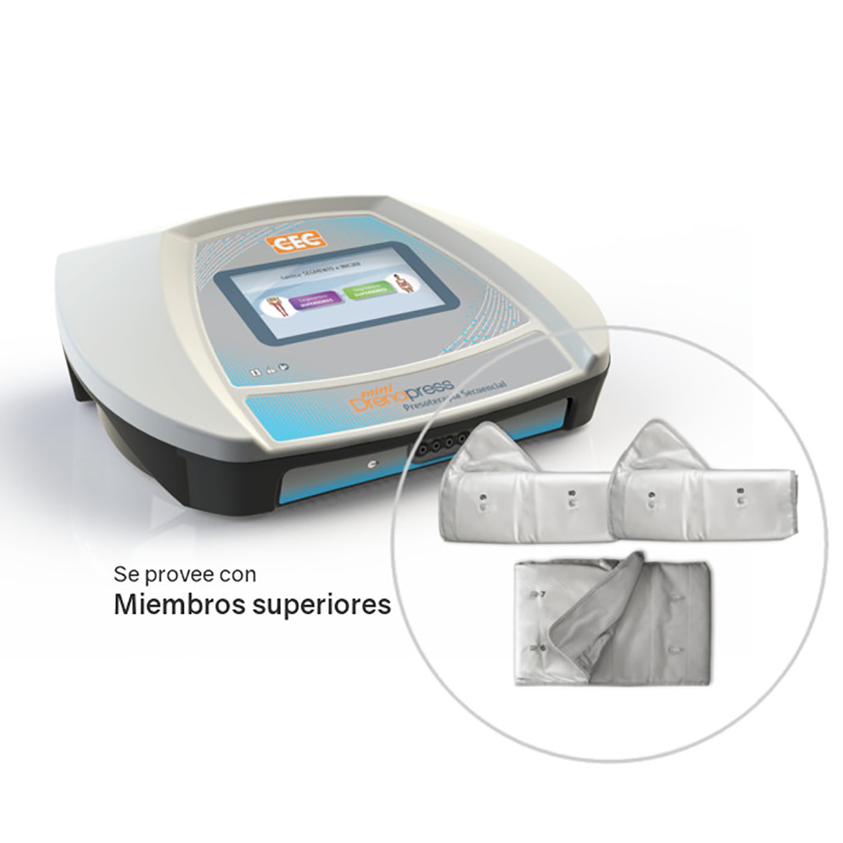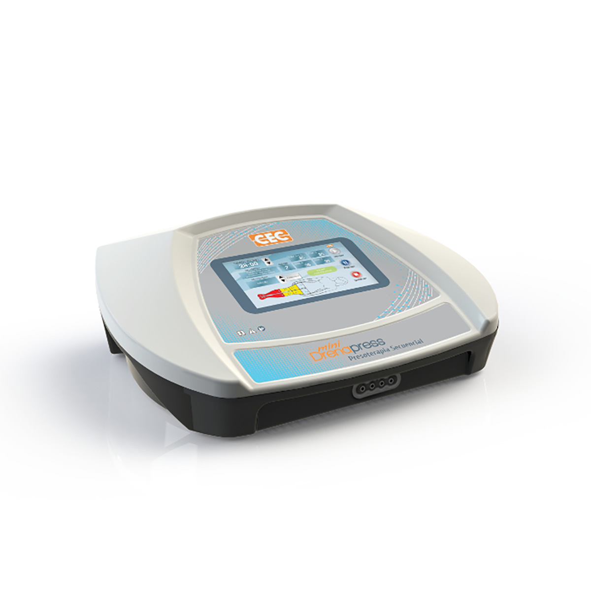 Mini Drenapress presoterapia secuencial realiza una compresión externa que aumenta el flujo circulatorio por diferencia de presión, facilitando el retorno venoso y linfático. Minidrenapress se provee con los segmentos a elección: Miembros superiores (mangas y abdomen), o Miembros inferiores (botas con pies desmontables) Provisto de: ·Segmentos a elección (Miembros superiores o Miembros inferiores). ·Pantalla táctil 7″. ·Presión regulable por cámara. ·Diferentes secuencias de inflado. ·Regulación manual de parámetros. ·Guarda programas personalizados. ·Cámaras de alta resistencia.