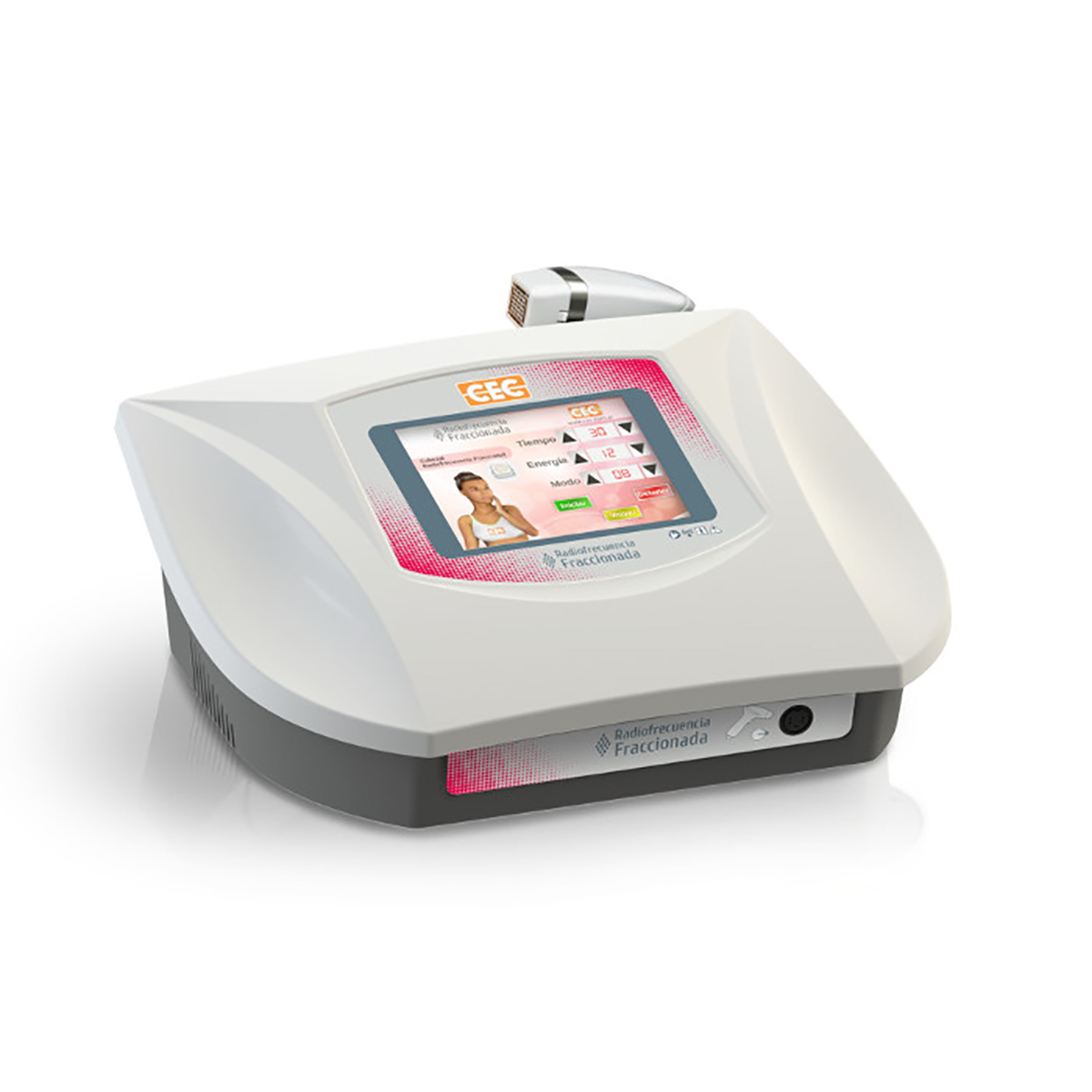 Equipo de radiofrecuencia fraccionada para tratamientos de rejuvenecimiento, alteraciones de la pigmentación, pieles fotodañadas y secuelas de acné. En relación a técnicas similares, permite obtener mayor concentración del efecto de radiofrecuencia por centímetro cuadrado. Pantalla táctil 8″, 6 aplicadores. Su interfaz sumamente atractiva e intuitiva enriquece la experiencia del usuario. Evolucionado diseño y óptima usabilidad. Provisto de: ·Cabezal ergonómico. ·Pantalla táctil 8 pulgadas. ·6 aplicadores.