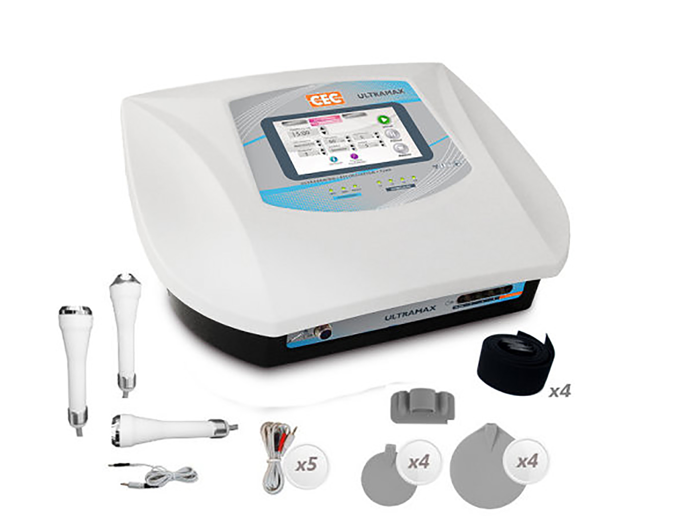 Electroestimulación, ultrasonido y TENS. Pantalla táctil 7 pulgadas, 1 cabezal 1MHz, 1 cabezal 3MHz, 4 canales corporales, 1 canal facial, 1 canal combinado. 80 programas. Ultramax trabaja con corrientes rusas, interferenciales bipolares y tetrapolares, TENS en todas sus modalidades y con ultrasonido de 1 y 3MHz. Permite realizar numerosos tratamientos a través de la combinación de las mencionadas corrientes y el ultrasonido. Los efectos de cada terapia se potencian, aumentando las prestaciones. Provisto de: ·1 cabezal 1MHz. ·1 cabezal 3MHz. ·4 canales corporales independientes. ·1 canal facial. ·1 canal combinado. ·Pantalla táctil 7 pulgadas. ·80 programas. ·Regulación manual de todos los parámetros. ·Control automático de temperatura del cabezal.