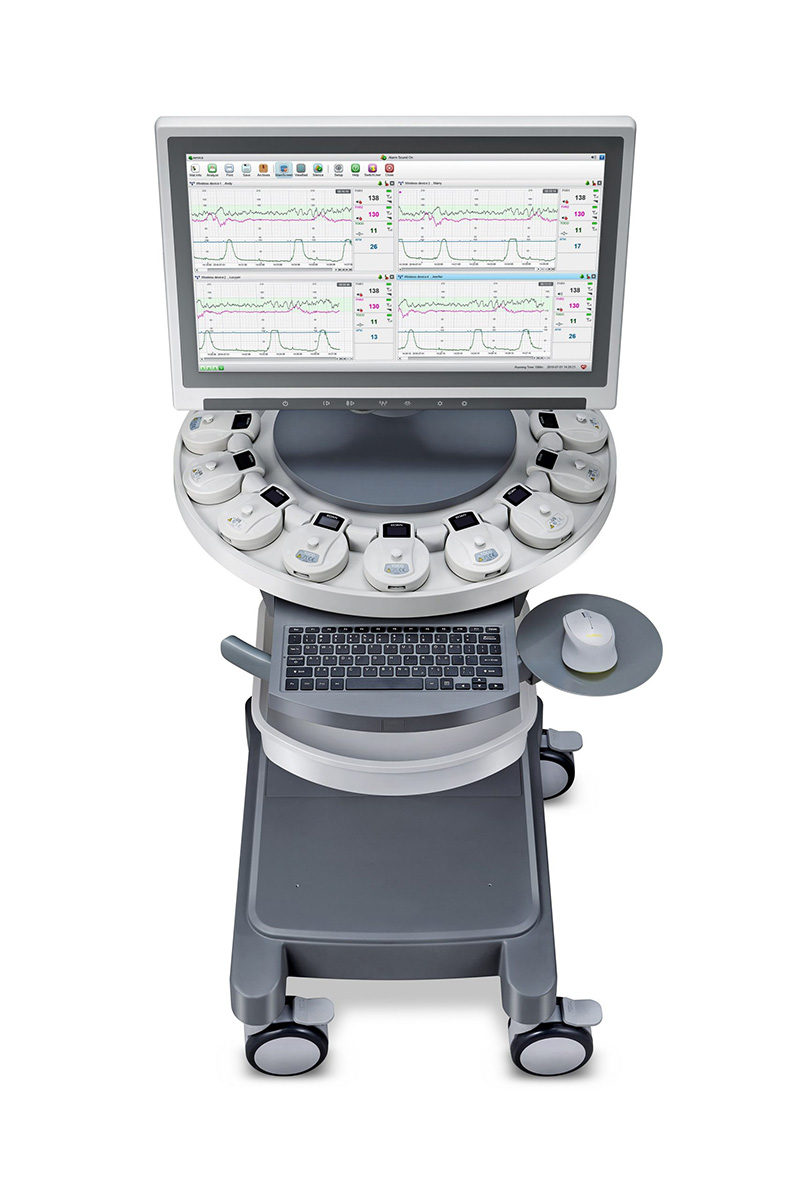 Central de monitorización fetal FTS-6 Con el sistema de monitoreo central y los transductores inalámbricos, el FTS·6 es una estación de trabajo centralizada que apunta a mejorar la experiencia de monitoreo tanto para la enfermera como para la mamá. Como un producto revolucionario de EDAN, cambia la forma del examen de monitoreo fetal desde la cabecera hasta la centralización, lo que aporta un flujo de trabajo optimizado a la rutina diaria clínica. La futura mamá también podría disfrutar de libertad de movimiento cuando se monitorea con transductores inalámbricos. Características: ·PC todo en uno con pantalla de 21,5 pulgadas táctil. ·Permite la monitorización de hasta 12 camas. ·Posibilidad de monitorizar Mellizos y Trillizos. ·Transductor ultrasónico inalámbrico de 12 cristales. ·Transductores arbitrarios US y TOCO. ·Transferencia automática del transductor con la ventana de monitoreo cuando se saca de la estación de trabajo. ·Capacidad de seguimiento del transductor. ·Potente software de gestión de datos para el registro, análisis, almacenamiento e impresión de datos. ·Análisis profesional integrado de CTG y NICHD. ·Sistema de alarma integral para la pronta acción. ·Impresora externa opcional para ahorro de papel. ·Soporte de conexión de los monitores fetales serie F de EDAN. ·Soporta conexión HL7 a HIS.