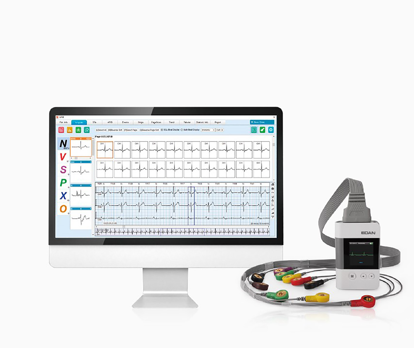 El sistema Holter de EDAN está compuesto por grabadora + software. Grabadora modelo SE-2012: ·Peso: 42g ·Grabación digital de 3 o 12 canales ·Consumo de baja de energía, hasta 96 horas de grabación. ·Funcionamiento con una pila alkalina AAA ·Despliegue de onda cardíaca en tiempo real. ·Grabación en tarjeta SD Especificaciones Técnicas: ·Canal de grabación: 3/12 Canales. ·Grabación: revelación completa, ninguna compresión de datos. ·Frecuencia de muestreo: 128 Hz, 10.000 s/sec/canal usado para detección de marcapasos. ·Conversión A/D: 8 Bit. ·Ganancia: 5, 10, 25 mm/mV. ·Respuesta de frecuencia: 0.05 Hz · 60 Hz. ·Batería: 1 AAA batería alcalina, 1.5 V. ·Duración de trabajo: 24 · 96 Horas. ·Dispositivo de almacenamiento: Tarjeta SD (2 GB). ·Pantalla: Detección de marcapasos, Pantalla ECG, Lleva control de calidad, batería baja. ·Dimensiones: 68 mm X 53 mm X 16 mm.